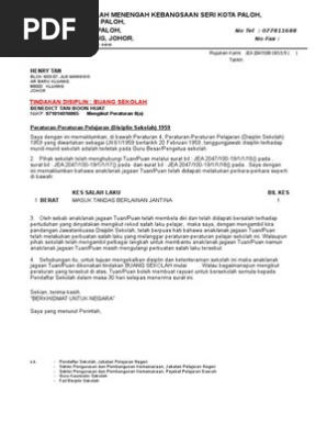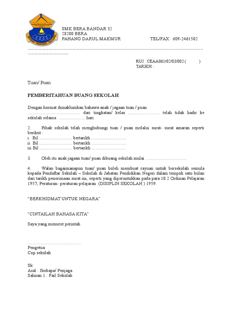 Contoh Surat Buang Sekolah Ponteng Sekolah Rendah Pdf